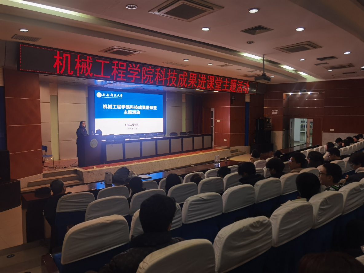 为积极对接国家“十五五”规划中“智能设计与制造”战略导向,深入贯彻落实《西安科技大学科研成果反哺教学工作实施管理办法(试行)》《西安科技大学本科生产教融合、科教融汇育人实施办法(试行)》等文件精神,西安科技大学机械工程学院依托陕西省煤矿智能化现代产业学院等平台,将“科技成果进课堂”从构想转化为生动实践,11月26日晚,机械工程学院在图书馆二楼报告厅成功举办“科技成果进课堂”主题活动报告会——“工程振动控制技术”“掘进工作面智能通风降尘技术及装备研究”。本场讲座由机械设计系牵头组织,学院23级、24级、25级机械设计制造及其自动化卓越、本硕、领军班200余名学生参加学习。机设系主任陈艳主持讲座。
