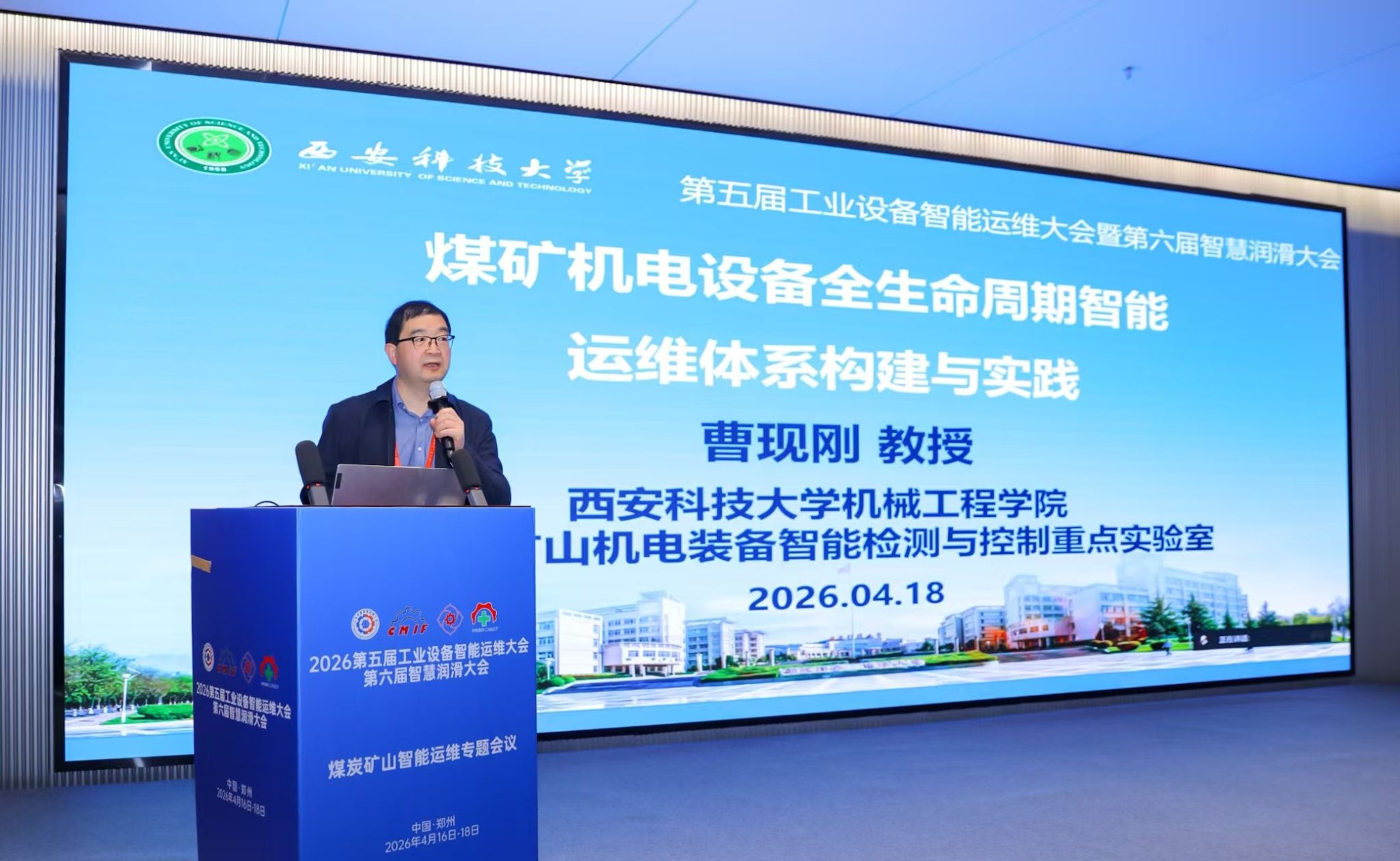 4月16至18日,第五届工业设备智能运维大会暨第六届智慧润滑大会在郑州召开。本次大会主题“数智赋能,智润未来——以新质生产力共筑工业设备智能运维新生态”,大会主办单位为中国机械工业联合会、中国机械工程学会和中国机电装备维修与改造技术协会,支持单位包括中国煤炭工业协会等18家单位,协办单位包括西安科技大学等18家单位,承办单位包括中国机械工程学会设备智能运维分会等4家单位。西安科技大学机械工程学院承办“煤炭矿山智能运维专题会议”分论坛,学院机电装备智能运维方向师生14人参加了会议。