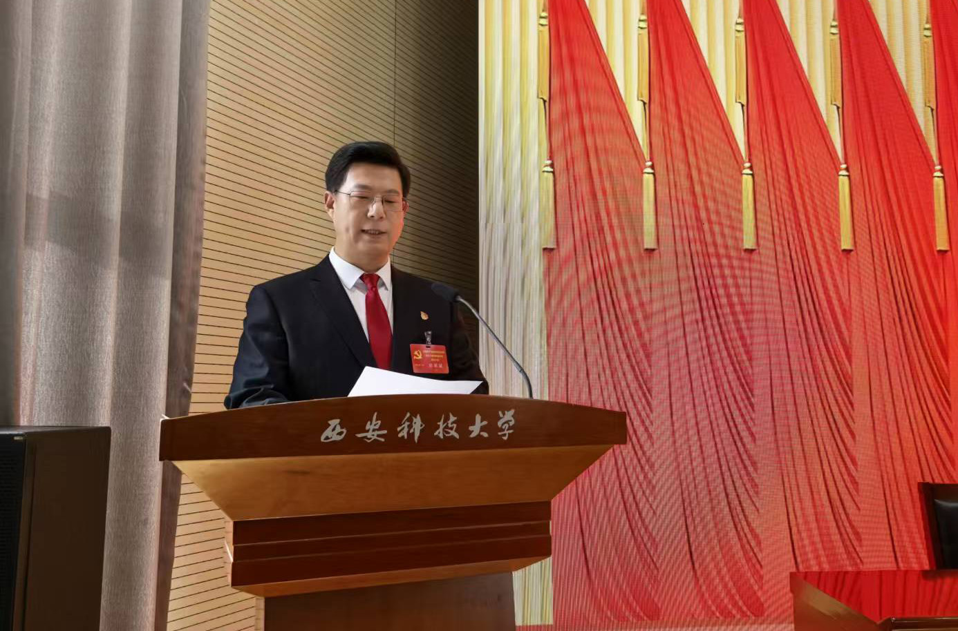 张金来代表学校党委向大会召开表示热烈的祝贺,对学院党委的周密筹备和规范组织给予充分肯定,认为此次大会组织严密、程序规范、过程民主,并高度评价了学院近五年来的工作。他指出,五年来,在学校党委的正确领导下,机械工程学院党委紧密围绕立德树人根本任务,团结带领全院师生,在党建“双创”、本科教学、研究生教育、学科建设、科学研究、社会服务及学生就业等方面积极作为、精准发力,取得了突出成绩。他强调,站在“十四五”收官与“十五五”谋划的交汇点上,面对新一轮科技革命、产业变革和教育强国建设的时代要求,一是要把稳政治方向之舵,在强化思想引领上彰显新担当。将学习贯彻习近平新时代中国特色社会主义思想,特别是关于教育、科技、人才的重要论述,融入办学治院、教书育人全过程;二是要筑牢组织体系之基,在锻造坚强堡垒上实现新作为。探索在重大科研项目组、高水平科研平台、创新团队中灵活设立党组织,推广“支部建在科研一线”的有效做法。三是要聚焦主责主业之要,在推动高质量发展上谋求新突破。紧密对接国家“双碳”战略、制造强国战略和能源安全需求,凝练和巩固在煤矿智能化、高端装备制造等领域的特色优势,前瞻布局智能机器人、智能制造等新兴交叉方向。四是要弘扬清正务实之风,在营造优良生态上展现新气象。新一届党委和纪委要切实担负起全面从严治党主体责任和监督责任,严守党纪底线,以风清气正的政治生态保障学院“十五五”事业行稳致远。